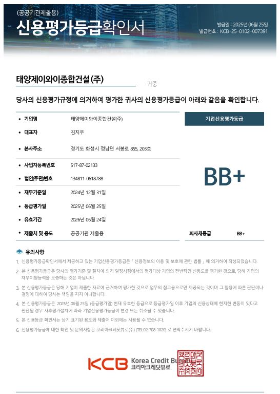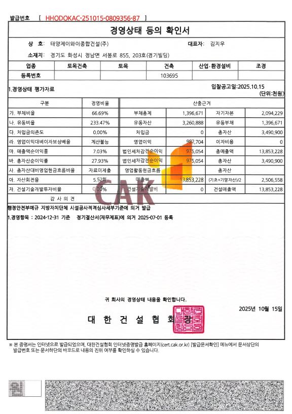 시공능력평가액 확인서