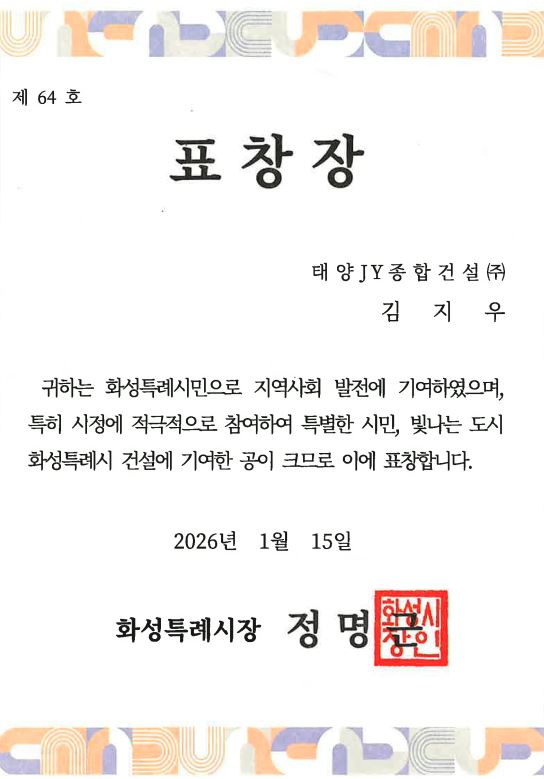 화성특례시장 표창장