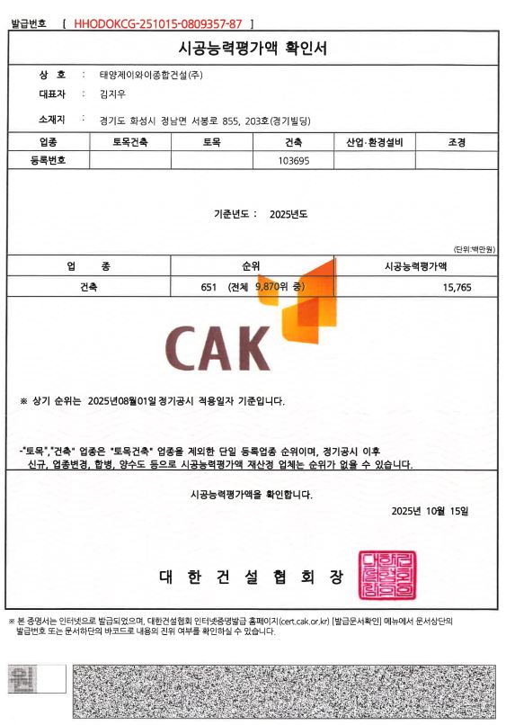 시공능력평가액 확인서
