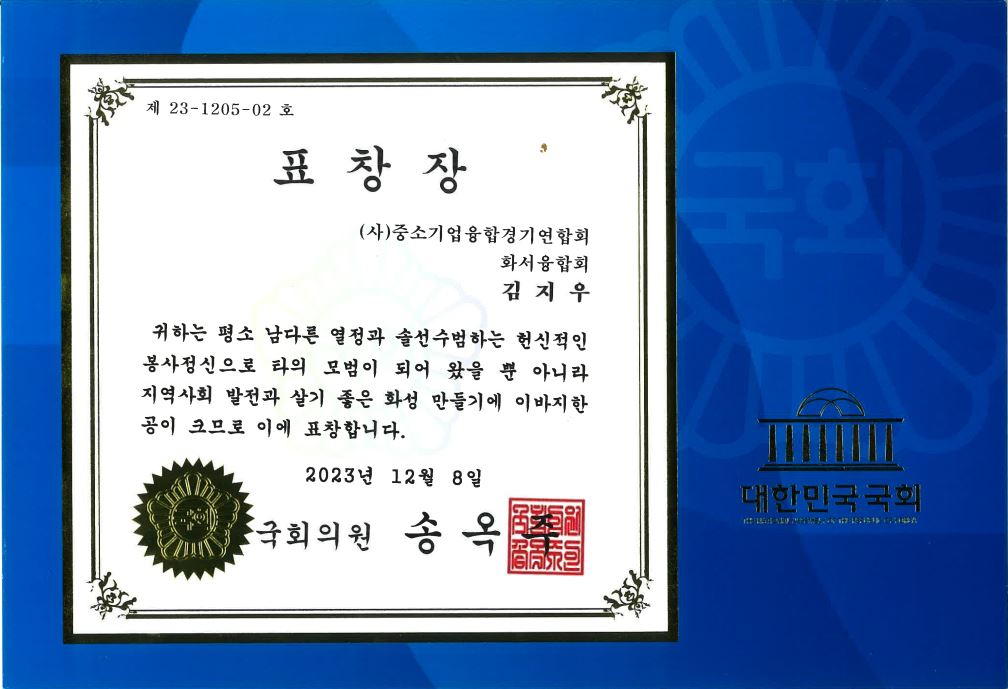 화성특례시장 표창장