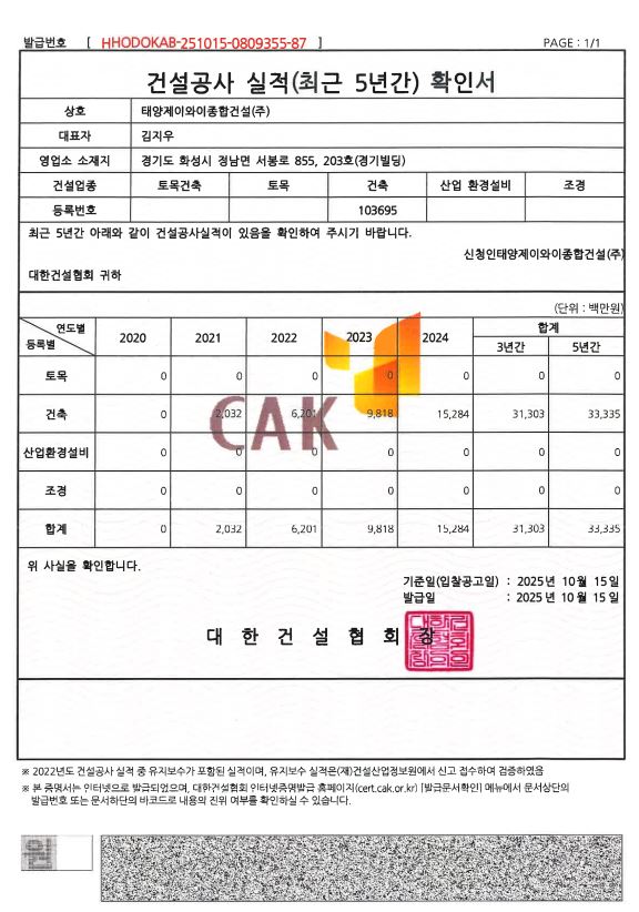 건설공사 실적 확인서